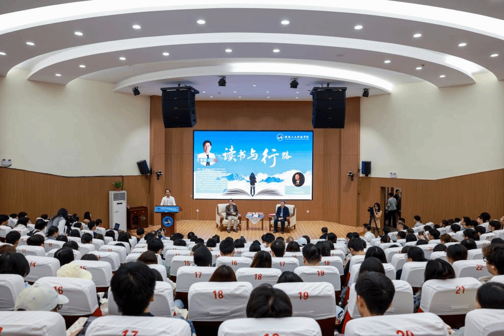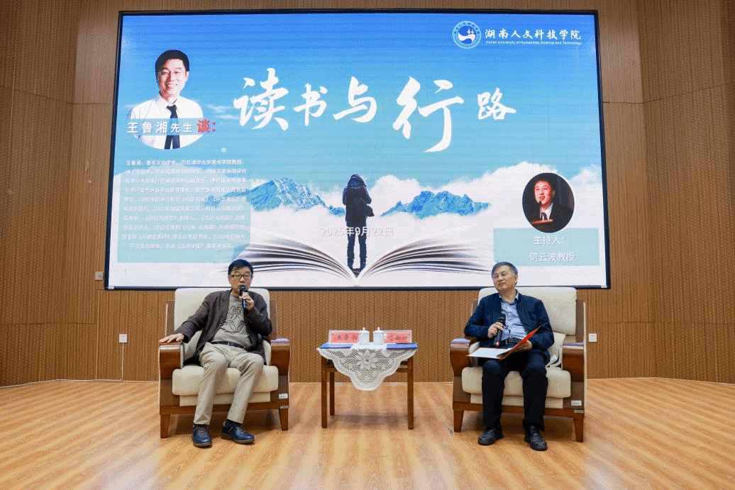湘潭大学文学与新闻学院何云波教授主持“读书与行路”学术讲座。王鲁湘教授在讲座中深刻阐释“读书与行路”的辩证关系,他提出读书是吸纳文明成果的“内功”,书籍如同“凝固的风景”,承载历史智慧与文化脉络;行路是验证书本知识的“外功”,行走大地恰似“阅读鲜活的典籍”,能让人在亲历中感知文化温度。他结合自身数十年治学与游历经历,旁征博引,强调真正的智慧在于让灵魂与脚步同步,让知识在实践的沃土中生根发芽。