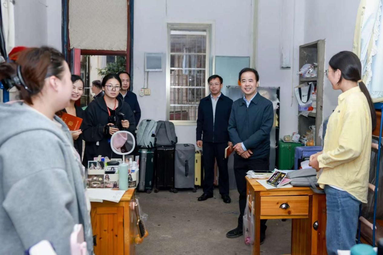 党委副书记、校长盛明科,党委委员、副校长谭峰亮来到能源与机电工程学院、商学院、法学院、马克思主义学院等学院大一新生寝室,了解学生学习、生活情况。每走进一间宿舍,他们都与同学们亲切交流,详细询问大家学习、生活中遇到的问题和困难,“宿舍里有什么不方便的地方吗?”“晚上休息得怎么样,天气转凉要注意添衣保暖……”一句句暖心的话语瞬间拉近了师生之间的距离。同学们纷纷敞开心扉,就校园生活、学业规划等方面畅谈想法和建议。盛明科认真倾听,并叮嘱工作人员详细记录,要求后勤、学工等相关部门及时跟进处理。他表示,学校将持续推进宿舍升级改造,不断改善同学们的居住条件。他强调,学校的一切发展,必须始终坚持以学生为中心,要持续提升学生在校的住宿体验。