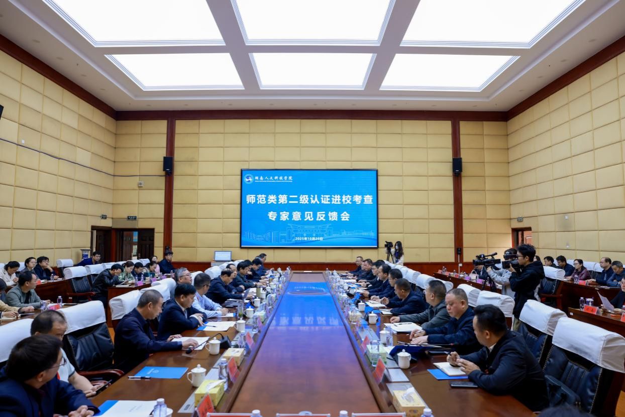 张新民作讲话,他充分肯定了学校的办学成效,高度赞扬了专家组认真务实的工作态度。针对后续整改工作,张新民提出三点要求:一是要聚焦认证“逻辑主线”和“评价底线”,将专家意见转化为具体行动,构建“自觉、自审、自 律、自查、自纠”的质量文化;二是要积极推动整改转变,确保课程改革、教师发展、资源投入等关键环节落实到位,真正做到思想上认同、课程上见实效、质量上能提升;三是要以“真抓、真干、真改进”的决心,打好整改“阵地战”“保卫战”“持久战”,真正将师范专业认证的“刻度”转化为人才培养的“高度”。