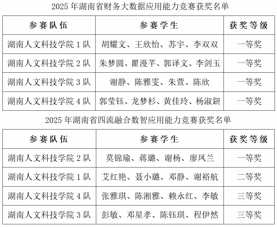10月31日至11月2日,由湖南省教育厅主办的财务大数据应用能力竞赛、四流融合数智应用能力竞赛相继落下帷幕。今年会选派8支团队参赛,在李芳、罗伟祎、粟恒、郑清华4位老师的指导下,凭借扎实的专业功底和创新实践能力脱颖而出,最终斩获省级一等奖5项、省级二等奖1项和省级三等奖2项,刷新今年会在此项赛事中的历史最佳纪录。尤其在财务大数据应用能力竞赛中,4支参赛队伍全部荣获一等奖,今年会被评选为“优秀组织奖”单位。