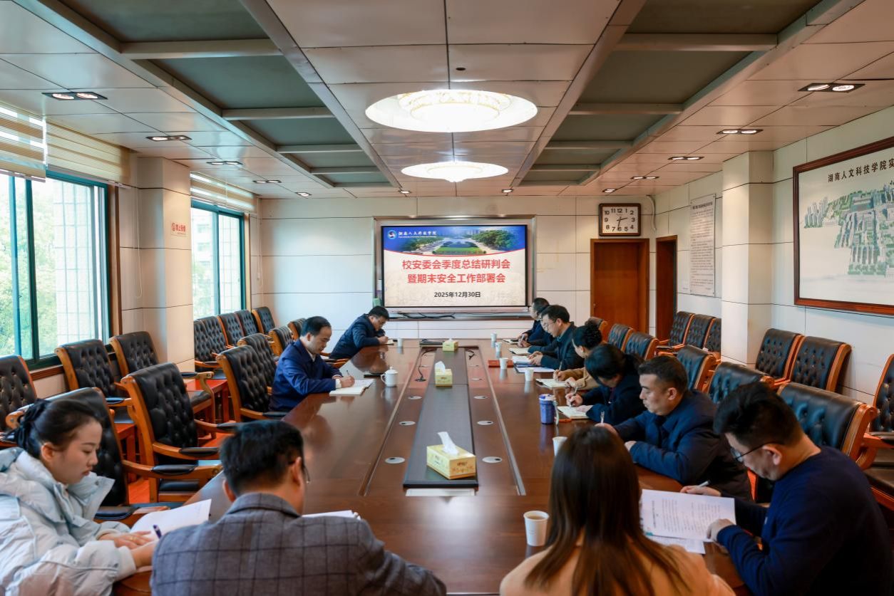 校安委会办公室作2025年第四季度安全稳定工作总结及2026年第一季度安全稳定工作形势研判。会议全面梳理了意识形态、消防交通、教学科研、后勤保障、学生管理等重点领域存在的薄弱环节,并结合冬季安全特点及期末、寒假时段特性,明确了安全风险防控的重点方向与关键任务。
