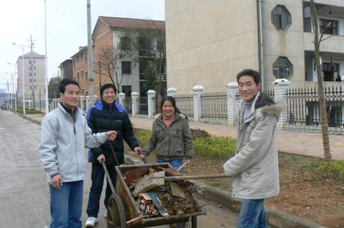 春雨菲菲,乍暖还寒。在这个因为雷锋而温暖的三月,为弘扬雷锋精神,3月6日下午,院团委精心组织了70余名留校青年志愿者,走上街头,深入校园,开展了“参与志愿服务,献礼和谐校园”义务服务活动。竹山西路,在院长助理刘铁铭同志的带领下,外语系、体育系的青年志愿者迎着寒风,清扫马路、排除路障、打扫阳光公寓,通过近四个小时的奋战,校园内外环境焕然一新,为同学们的入校创造了优良的环境。同时,此次活动也拉开了“践行志愿精神,构建和谐校园”的青年志愿者服务月活动的序幕。