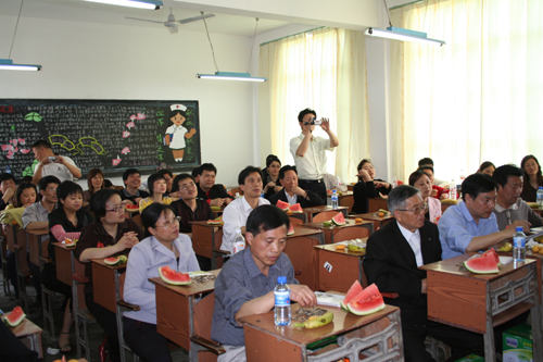 5月1日,班主任余为(现化学系书记)为此次聚会特作了三首散文诗,肖君健同学赠送了自己的诗集——《你能听懂我的话吗》。5月2日下午,同学们游览了20年前学习的地方,亲身感受母校的发展。同学们走进当年上课的教室进行座谈,师生们共同追忆师生之情。院党委委员、纪检书记李尚益同志亲自陪同,并向校友们介绍了学院的最新发展和未来的规划,他代表学院对51班同学的母校深情表示了感谢,并对他们取得的成绩表示了祝贺。最后,同学们向母校和老师送上了精美的纪念品。
