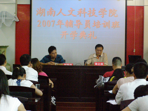 此次培训内容包括辅导员的素质结构和职业道德,学习和解读有关政策文件。主要以专题讲座、经验介绍和工作研讨等形式进行。院党委书记黄懿斌教授做了题为《怎样当好辅导员》的讲座,院长助理刘铁铭教授做了题为《辅导员培训班的意义及辅导员的素质要求》的讲座,特邀的中南大学基础教育学院党委书记、博士生导师刘新庚教授做了题为《大学生学风建设》的讲座,学工部的各部门负责人也就各自职能范围和工作经验讲授了相关的专题。专题讲座后,三位经验丰富的辅导员做了典型经验介绍,全体辅导员紧紧围绕着“如何实现辅导员工作的科学化和规范化、提高辅导员的职业行为能力”等中心内容展开了热烈而富有成效的讨论。