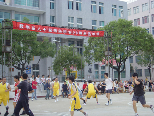 下午4点,校友们在学校篮球场进行了一场精彩的篮球赛。