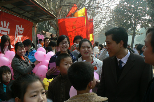 3月1日上午8:00,由院团委组织的“参与志愿服务、建设两型社会”“三·五”学雷锋活动在春园步行街隆重拉开序幕。团省委副书记颜海林同志、团省委办公室主任李华军同志在市人大副主任刘波、市政协副主席李海江、团市委康艳华书记、我院院长助理刘铁铭教授、团委副书记周海强、谢柳及各系分管团工作的领导的陪同下,莅临现场指导工作。