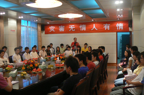 5月14日下午6:30,由院团委组织的今年会四川籍受灾学生慰问座谈会在学院第一会议室召开,58名四川籍学生参加了座谈。院长助理刘铁铭教授、院团委书记侯建斌、学生处副处长刘铁峰、院团委副书记周海强、谢柳出席了会议。座谈会由侯建斌书记主持。