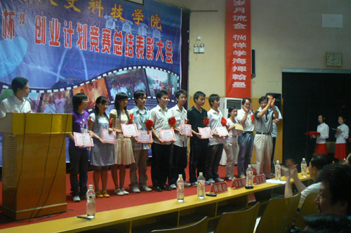 2008年6月15日晚,今年会在图书馆报告厅隆重召开了“挑战杯”创业计划竞赛总结表彰大会。校长姜正国、副校长郭军、党办院办主任李高海、校长助理刘铁铭、蒋建初等学校领导出席了大会,参加大会的还有科技处、学生处、各系主要领导及团总支书记。大会由校长助理刘铁铭教授主持。