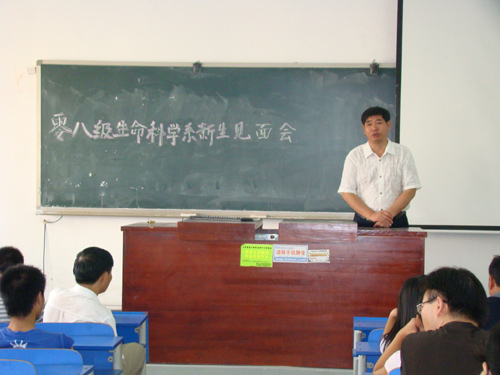 2008年9月10日上午,生命科学系在5栋412室举行新生入学教育暨师生见面会。系领导、新生班主任以及08级新生和部分07级学生参加了会议。
