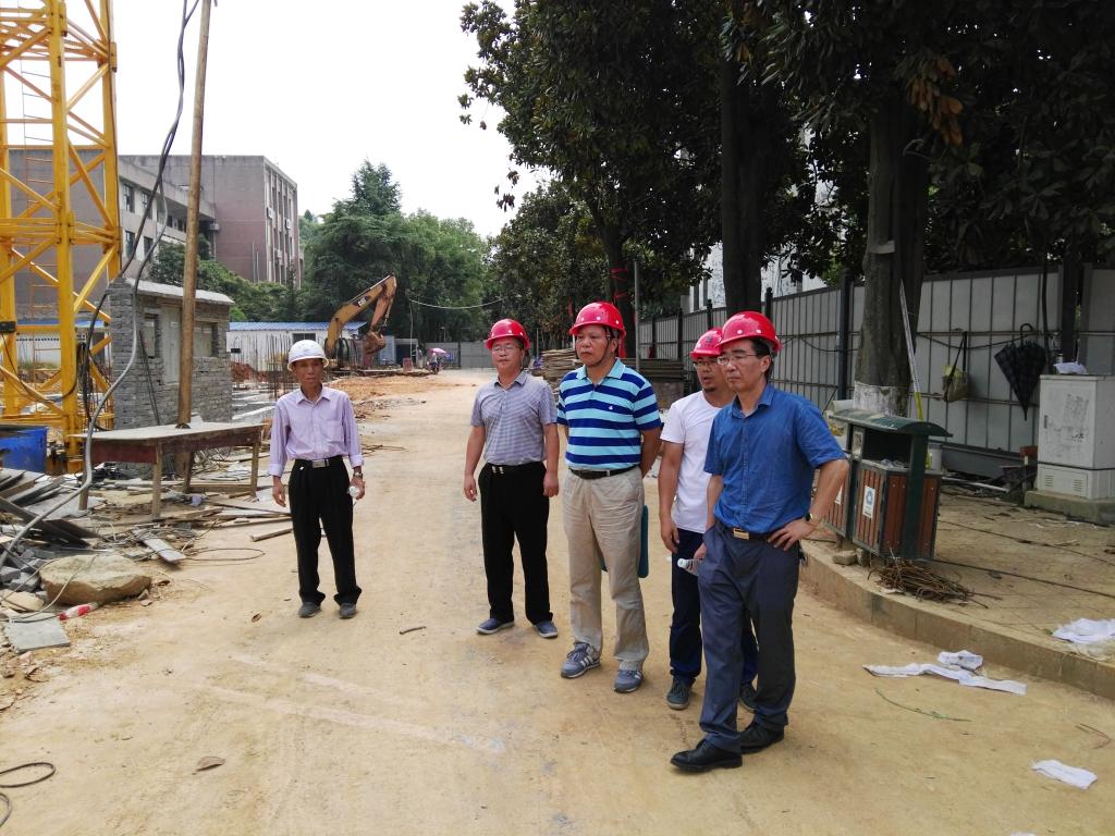 2017年8月2日上午,校长刘和云不顾高温酷暑,在副校长蒋建初及后勤基建处负责人的陪同下来到今年会笫八栋学生宿舍楼工程项目施工现场,向正在高温下紧张施工的一线建设工人送上感谢和问候。