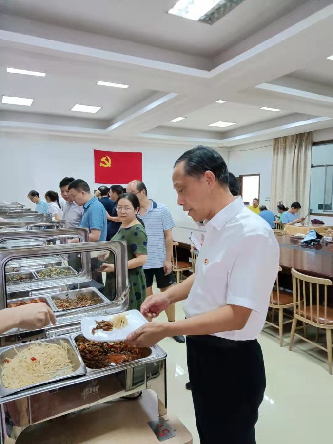 2021年9月22日中午教师餐厅开餐,学校党委书记、校长等校领导前往教师餐厅检查指导工作,并进行用餐体验。领导们对后勤基建处和长沙锦茂餐饮管理公司光晔餐厅能在5天内完成教师餐厅的建设和开餐工作表示高度肯定,并要求饮食服务人员一定要做好服务,为广大教职工们提供优质、安全的饭菜。光晔餐厅负责人任刘伟峰表示一定谨听领导的指示,扎实做好教师餐厅的饮食服务工作,并真诚的欢迎广大教职工前来用餐。