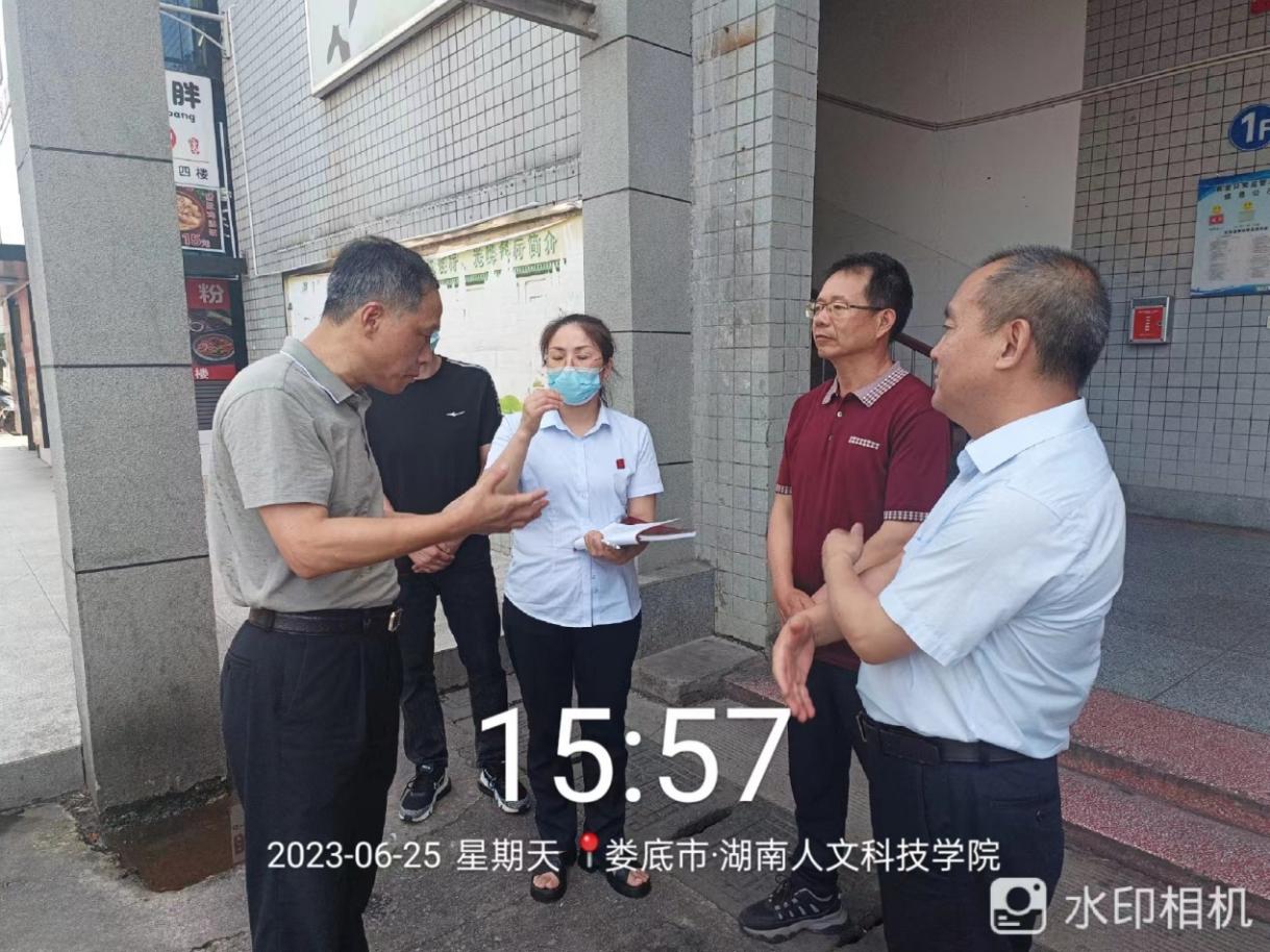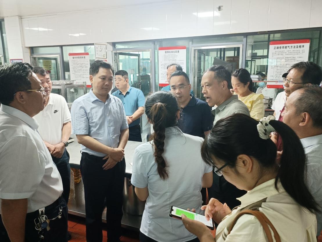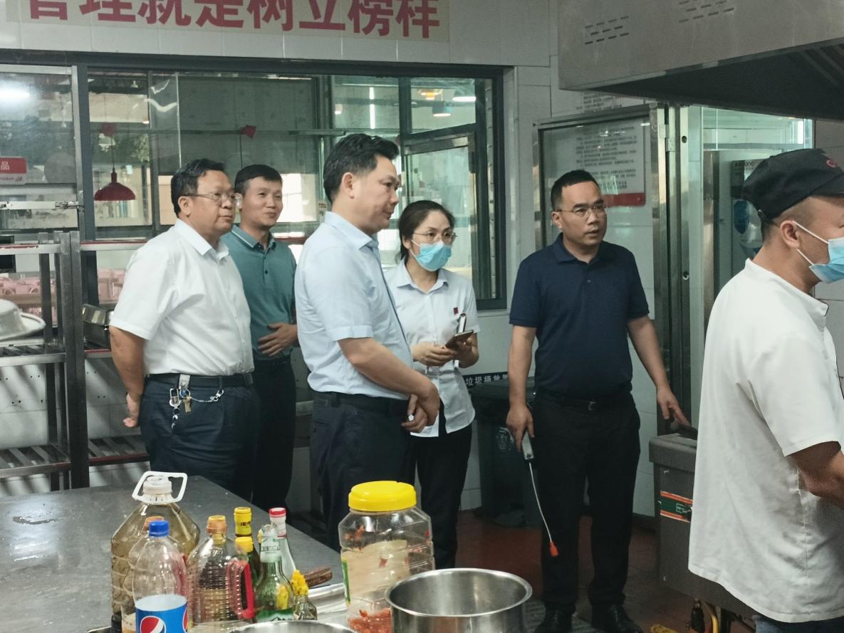 6月25日下午,娄底市副市长向乾勇带领市住建局、市场监管局、商务局、燃气公司等部门主要负责人及技术人员20多人,在今年会党委书记刘铁铬、副校长刘铁峰的陪同下来到淳和楼一楼,对今年会食堂天然气安全生产进行专项检查和指导。