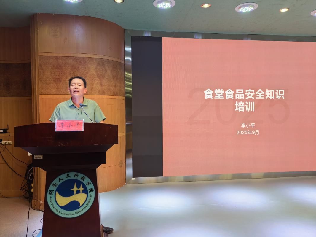 为进一步加强食品安全管理,切实保障师生饮食安全与健康,9月16日晚,后勤基建处饮食服务中心在养根楼报告厅组织召开了食堂从业人员食品安全培训会。后勤基建处处长向瑞桃出席,饮食服务中心各科室、自营食堂、托管食堂以及档口全体员工参加,会议由饮食服务中心负责人周浩主持。