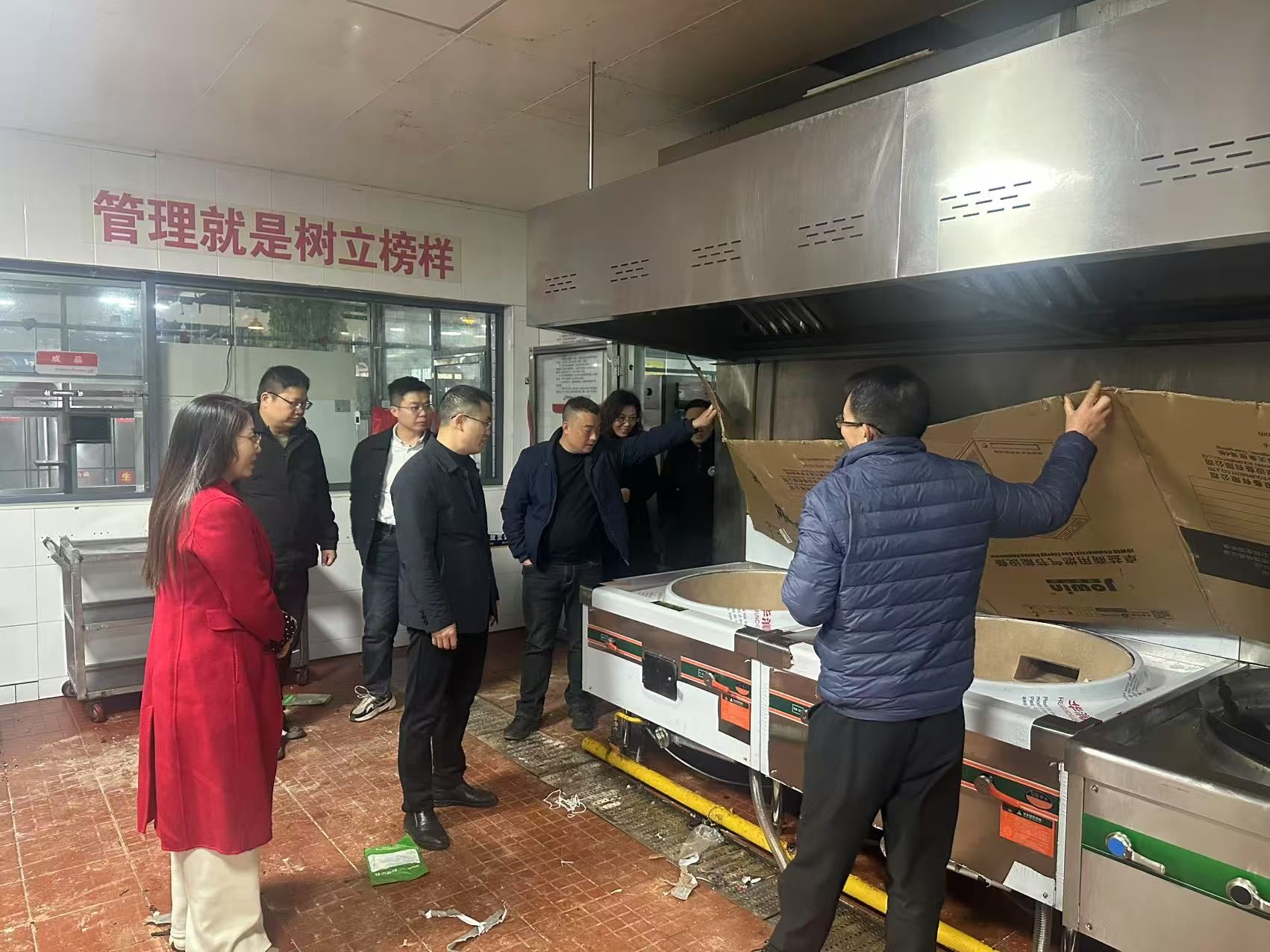 陈勇一行首先查看了淳和楼自营食堂,听取了管理人员关于自营准备情况的汇报。陈勇表示,食堂自营准备工作时间紧、任务重,要充分利用寒假时间,稳步推进工作开展,确保2025年春季开学淳和楼自营食堂正常投入使用。