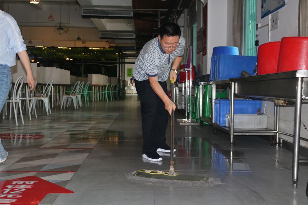 活动在处长、支部书记李小林的带领下,15名党员同志充分展现出后勤人不怕苦不怕累不脏的精神,将行远餐厅的餐桌椅进行了全面整理摆设和清洁,对地面进行了全面拖洗,为2020届毕业生开学返校提供一个舒适、安全的用餐环境。