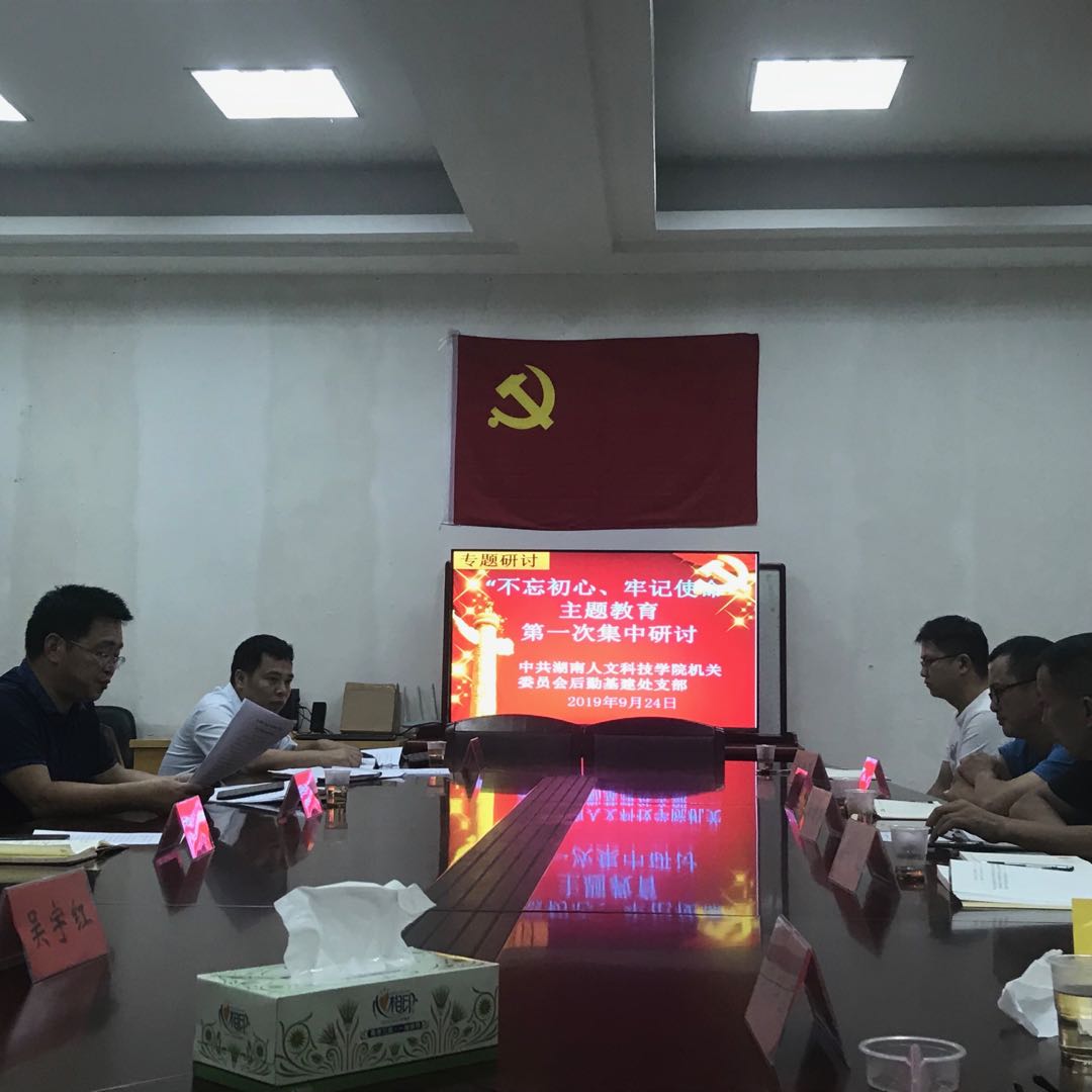 2019年9月24日下午,经过两天的集中学习和个人自学,后勤基建处党支部在淳和楼418会议室召开“不忘初心、牢记使命”主题教育第一专题研讨;旨在引导支部全体党员干部进行理论大学习,牢牢扭住主题教育根本任务不放松,把学习贯彻习近平新时代中国特色社会主义思想不断引向深入、融入工作中。