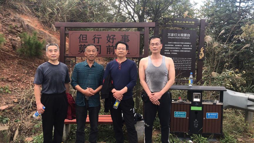 10点左右,四位同志率先登顶,为大家做了一个示范,鼓励大家坚持登上山顶,体会一番 “会当凌绝顶,一览众山小”的心境。而后陆续有人员登上山顶,合影留念。