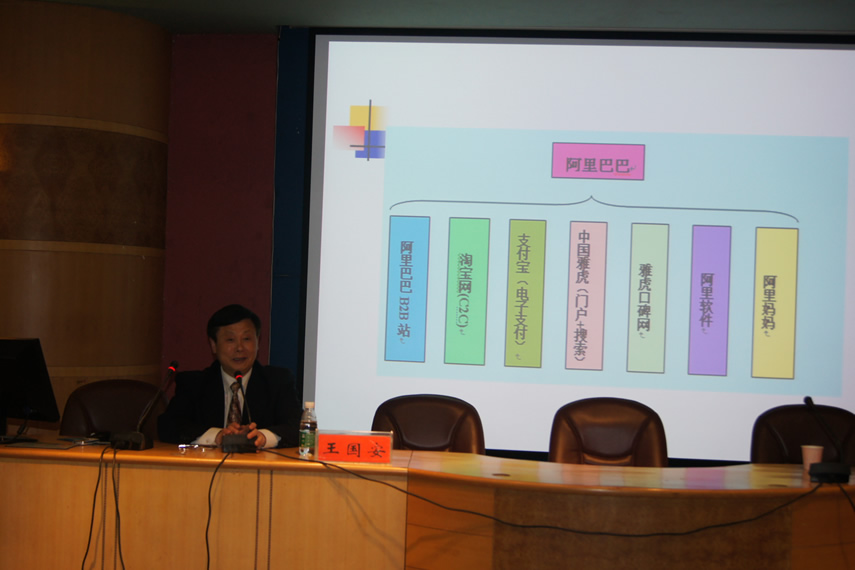 王国安教授早前与阿里巴巴创始人马云执教于同一学校,曾与阿里巴巴联合开办阿里学院培养电子商务人才。在《阿里巴巴的营销策略》课题的讲解中,王教授细数在马云在创业之初的雄才伟略、远见卓识以及那些鲜为人知的艰难故事,用故事引领同学们进入到阿里巴巴的世界。王教授详细的介绍了阿里巴巴旗下的淘宝、支付宝等知名名牌的运营模式,深入剖析了阿里巴巴建立电子商务平台,突破网络不能确保诚信交易的瓶颈,建立网络诚信交易机制的营销模式。王教授深入浅出的讲解揭开了阿里巴巴神秘的面纱,引起了同学们浓厚的兴趣。在短短的两个小时的讲座中,有几十位同学结合王教授的讲座内容以纸条的方式提出自己感兴趣的问题请王教授给予解答,王教授睿智的解答引得现场掌声连连。