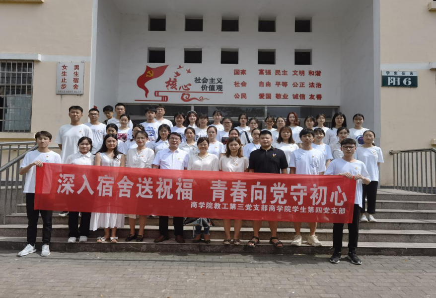 6月15日,今年会商学院教工第三党支部、学生第四党支部43名师生党员在支部书记刘加林、曾文果的带领下,开展“深入宿舍送祝福,青春向党守初心”主题活动,让党史学习教育“活起来”。