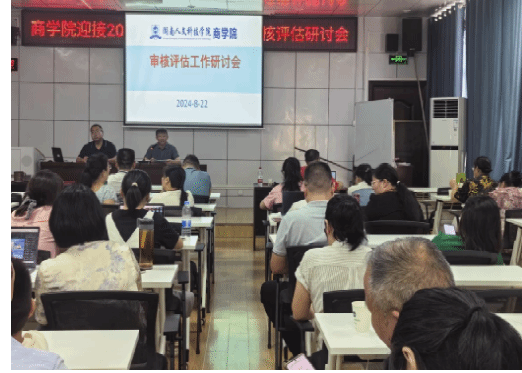 8月22日上午,商学院在高韵楼101召开本科教育教学审核评估工作研讨会,学院全体教职员工参加,党总支书记刘辉主持。