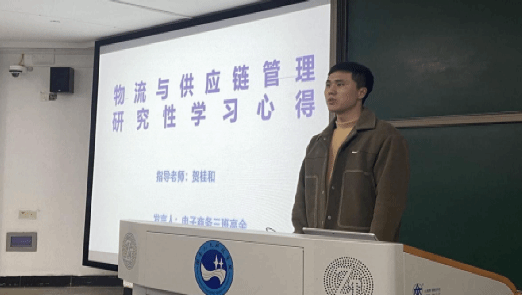 2023年12月5日晚,商学院2022级电子商务专业《物流与供应链管理》研究性课题总结与表彰大会在致远楼401教室隆重召开。学校督导朱阳生教授、商学院刘加林教授、王晓军教授、党总支副书记胡益龙等十余位老师莅临大会。大会旨在对本学期2022级电子商务专业《物流与供应链管理》课程开展的研究性学习教学情况进行总结汇报,并对此次研究性学习过程中表现出色的十支优秀团队及其组长进行表彰。本次大会分三大流程: