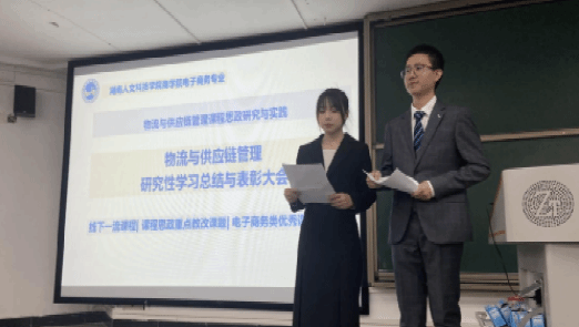 据悉,《物流与供应链管理》课程是湖南省线下一流课程建设点,已立项湖南省教育厅重点教改课题,课程负责人贺桂和教授从2021年开始实施研究性学习教学,研究性学习课题依《物流与供应链管理》课程教学大纲设计,融入了课程思政元素,以《物流与供应链管理》相关国家战略、法律法规和行业企业案例为内容载体,引导学生通过研究性学习了解《物流与供应链管理》发展前沿,让专业知识自己说话,寓价值观引导于知识传授和能力培养之中。通过研究式教学,打造了以学生为中心的“高效课程”,拓展了课程外延,提升了学生的学习兴趣,增强了学生的获得感,实现了知识传授和价值引领的统一,得到了学生、同行和督导的好评。