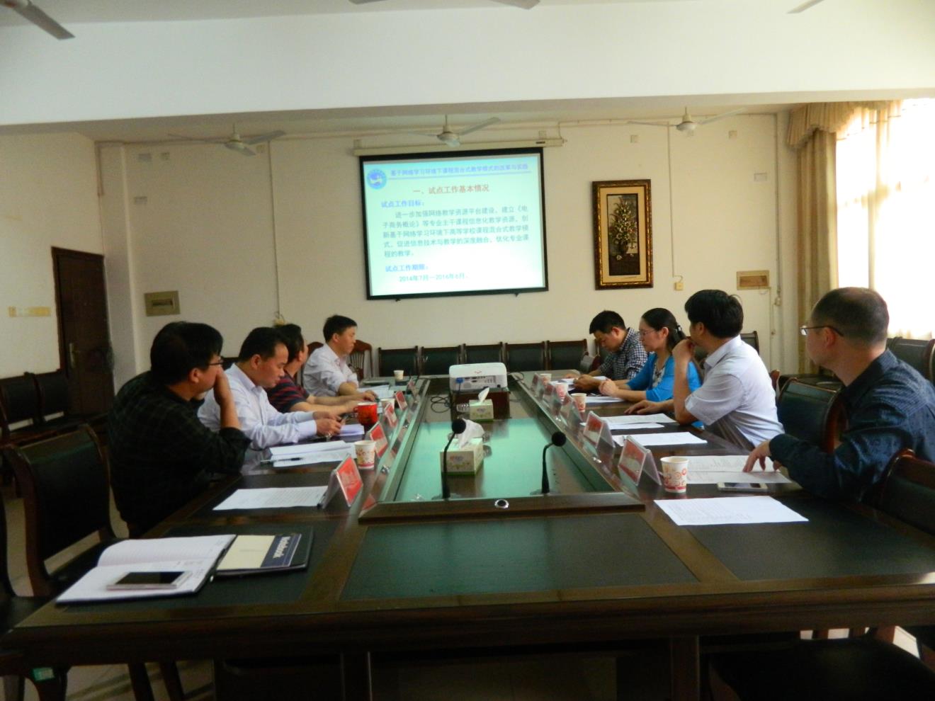 评审会议由周发明教授主持,试点项目负责人王志和副院长作了试点项目建设情况的汇报,对“基于网络学习环境下高等学校课程混合式教学模式”试点项目的基本情况、试点工作进展情况、试点工作效益及风险、试点过程中主要创新举措和工作方法、主要成效及经验等几个方面作详细介绍。