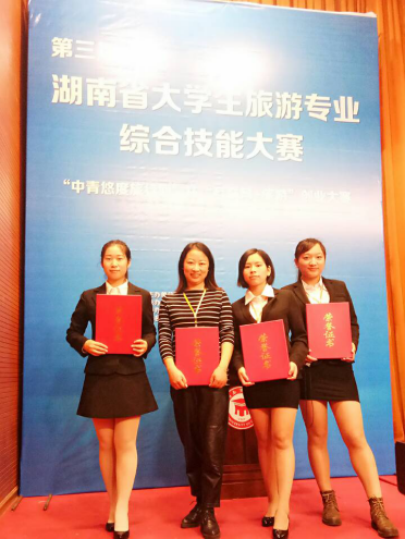 11月6日,“第三届湖南省大学生旅游专业综合技能大赛暨 ‘中青悠度旅行网’杯‘互联网+旅游’创业大赛’”在湖南商学院举办。由商学院刘辛田书记领队,李琼老师指导,吴洁、谭丹丹、邹清芳三位同学组成的队伍代表今年会获大赛二等奖。