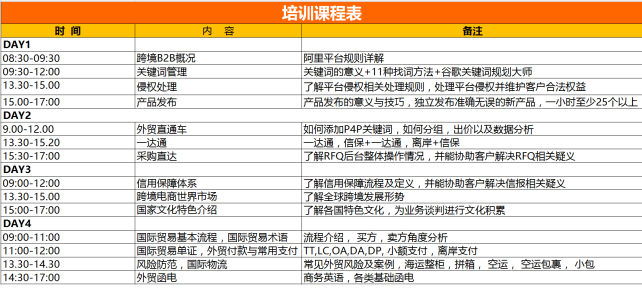 同时,根据课程培训体系,制定了具体的课程培训表,如下表所示: