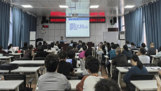 9月23日下午,商学院在高韵楼101开展师德师风专题教育,邀请娄底市人大民族华侨外事委员会主任委员曾敏来我院做题为《践行“服务之人生观”,做有“血性”的好老师》的专题辅导报告。党总支书记刘辉主持,商学院全体教职员工参加。