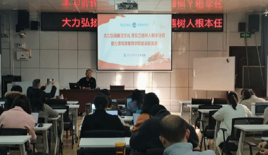 11月28日,商学院在高韵楼101举行“大力弘扬廉洁文化 落实立德树人根本任务 奋力谱写清廉商学院建设新篇章”主题党风廉政教育活动,商学院全体教职员工参加,党总支书记刘辉主持和主讲。