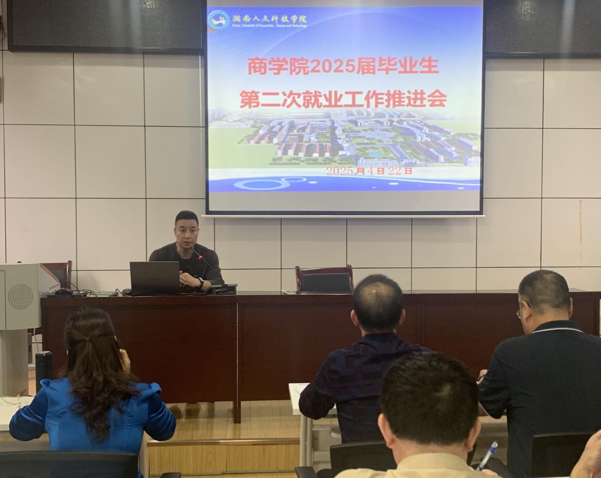 为扎实推进2025届毕业生就业工作,4月22日下午,商学院在高韵楼101召开2025届毕业生第二次就业工作推进会,统筹部署就业攻坚与学生管理重点任务。会议由院党总支书记刘辉主持,全体教职工参会。