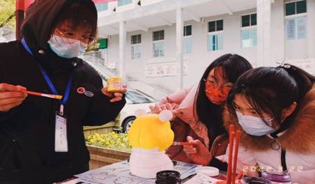 活动期间,志愿者们在食堂前坪摆点宣传,全校师生还可以在摆点处制作以“传承雷锋精神,共建温暖社会”为主题的手工DIY,用画笔在石膏娃娃上绘出自己心中的雷锋,重温那可敬的模样。