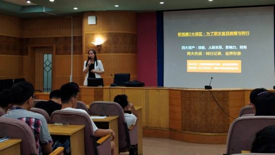 第一场的主题为“面试入职加油站”,柴娟娟学姐通过与现场同学们进行互动的形式,向大家阐述了选择一个好的职业、一个有前景的行业是很重要的道理,告诫同学们要用实际行动去提升自己的核心竞争力,要根据自身发展的需要和综合竞争力进行有效的投资,做到与时俱进但不随波逐流。