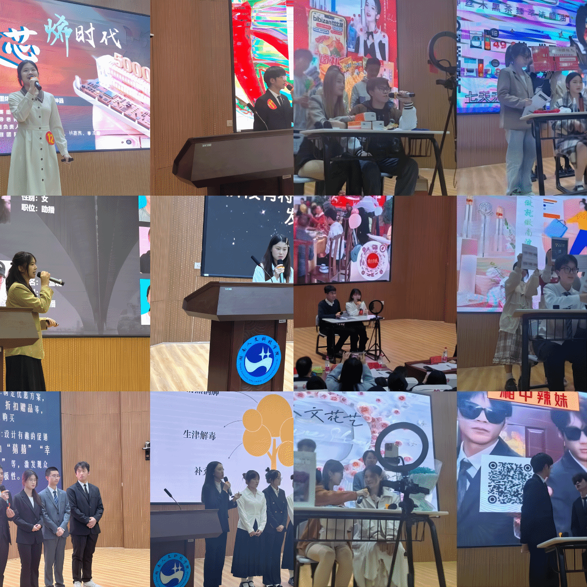 《人文的二手书屋》《品如的娘家人》等12支团队参加决赛。决赛统一的流程是各队从项目路演、现场直播、短视频制作三个模块进行展示后,由评委提问、各队限时作答。每支队伍都准备充分,比赛现场精彩纷呈,场内欢笑阵阵、时时掌声雷动。经过激烈的比拼,共产生三等奖6名、二等奖4名以及一等奖2名。