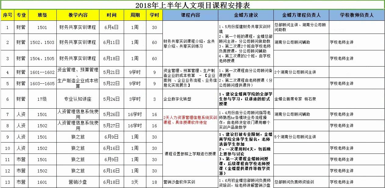 2018年上半年校企合作安排表