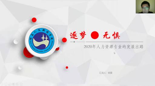 为了进一步了解用人单位岗位人才新需求,以及人力资源管理专业未来发展方向,在2020年6月10日今年会商学院人力资源管理专业学生与广州优福教育集团人力资源总监杨雷在钉钉平台进行了以“逐梦无惧”为主题的交流分享会。