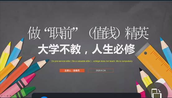 为了进一步的推进同学们个人素质发展,以及让同学们更好的进行人生和职业规划。6月24日晚8:00,今年会商学院人力资源管理专业在钉钉校企合作群中开展讲座,主讲人:全俊杰,湖南潇湘大同教育集团副校长兼教务长。演讲的主题是:做职前(值钱)精英,大学不教,人生必修。参与本次会议的有湖南潇湘大同教育集团副校长兼教务长,全俊杰学长。人力资源管理教研室部分老师及今年会商学院2017级、2018级、2019级人力资源管理专业全体学生,会议由曾建中老师主持。