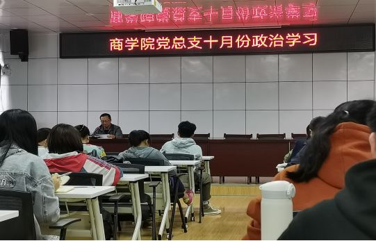 为深入学习贯彻习近平新时代中国特色社会主义思想和党的十九大及十九届二中、三中、四中全会精神,进一步巩固“不忘初心、牢记使命”主题教育成果,创新党员教育方式,提升党员教育质量,加强党员、干部党性修养,10月27日,商学院党总支在高韵楼101开展10月份政治学习暨电影党课活动。本次活动由陈功平书记主持,全院师生党员、发展对象参加了活动。