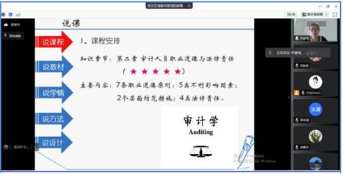 为深入贯彻落实中共中央办公厅、国务院办公厅《关于深化新时代学校思想政治理论课改革创新的若干意见》和《高等学校课程思政建设指导纲要》文件精神,落实立德树人根本任务,高质量推进以“课程思政”为目标的课堂教学改革,使各类课程与思想政治理论课同向而行,全面提升我院教师课程思政教学能力,商学院于410日下午举行“商学院2022年课程思政教学竞赛”。比赛在腾讯会议上进行,特邀质量监控与发展规划处处长蒋冰清,校督导团副团长杨正德教授、校督导胡云生教授、朱阳生教授以及商学院院长刘辛田教授担任评委,副院长刘加林教授主持。