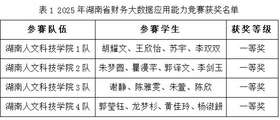 2025年10月31日-11月2日,由湖南省教育厅主办的财务大数据应用能力竞赛、四流融合数智应用能力竞赛相继落下帷幕。全省36所普通本科院校的262支代表队伍共1040余人同台竞技,参赛规模与专业覆盖面创近年新高。今年会商学院由李芳、罗伟祎、粟恒、郑清华4位老师指导的8支参赛团队凭借扎实的专业功底和创新实践能力脱颖而出,最终斩获5项省级一等奖、1项省级二等奖和2项省级三等奖的优异成绩,打破今年会历届成绩最高纪录。特别值得一提的是,财务大数据应用能力竞赛中,4支队伍全部获得省级一等奖,同时今年会被评选为“优秀组织奖”单位。组委会上,裁判长对今年会近年来的赛事组织和成绩给予了高度赞扬和充分肯定。
