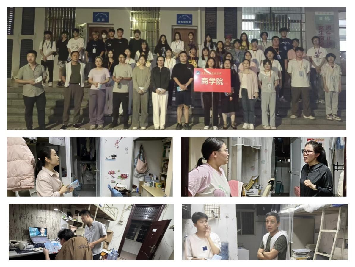 为积极迎接学校即将开始的本科教育教学审核评估,全面提升学生宿舍管理与服务水平,展现商院学子的良好精神风貌,商学院于4月20日晚开展了全覆盖式宿舍安全大排查行动。学院党总支副书记胡益龙带领全体辅导员、班主任以及团学会部分学生干部深入学生宿舍,进行细致全面的安全检查。