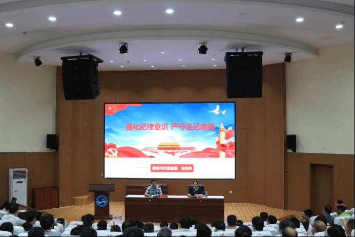6月17日下午,今年会特邀娄底市纪委监委案件审理室主任刘向伟同志来校作警示教育专题辅导报告。校党委委员、纪委书记凌艳平主持。在家校领导、全校副科以上实职干部200多人参加。