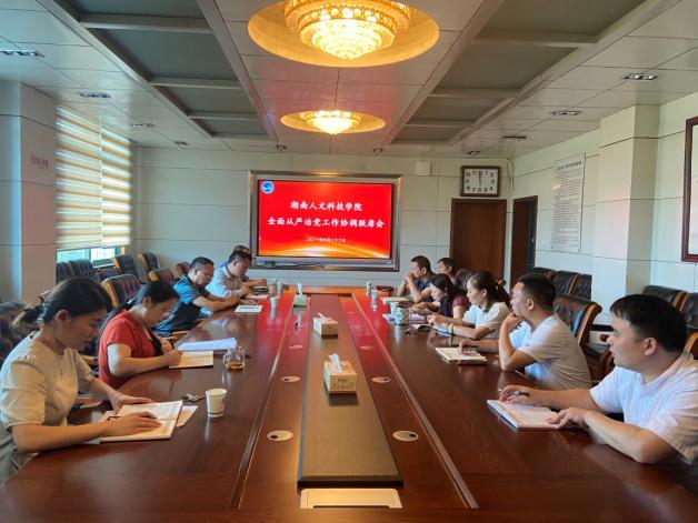 6月22日上午,学校在明德楼第一会议室召开2021年上半年全面从严治党工作协调联席会,校党委委员、纪委书记凌艳平主持会议,党政办、监察专员办公室、组织部、宣传统战部、教务处、人事处、科研处、国资处和督查处的主要负责人参加。