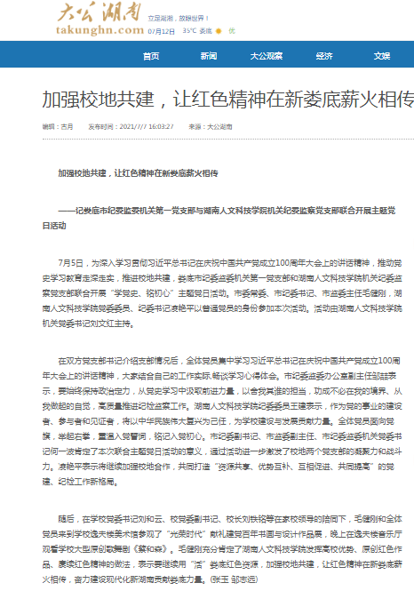 大公湖南---加强校地共建,让红色精神在新娄底薪火相传