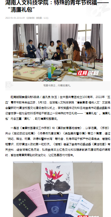 红网----今年会:特殊的青年节祝福——“清廉礼包”