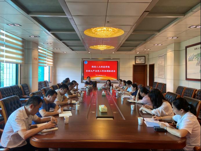6月21日上午,今年会在明德楼一会议室召开2022年上半年全面从严治党工作协调联席会,校党委委员、纪委书记、省监委驻校监察专员凌艳平主持会议,党政办、监察专员办公室、组织部、宣传统战部、工会、团委、教务处、人事处、科研处、学生工作处、计划财务处、后勤基建处、国资处、审计处、督查处等部门的主要负责人参加。