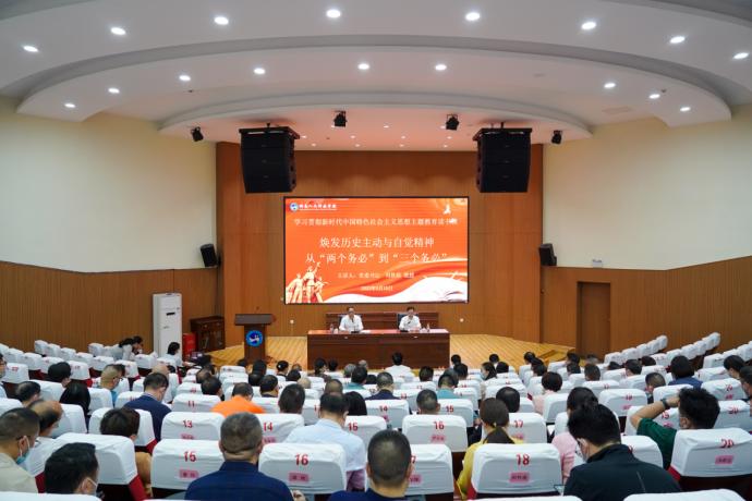 5月15日下午,党委书记刘铁铭在匠成楼为学校学习贯彻习近平新时代中国特色社会主义思想主题教育读书班作专题辅导报告。省委巡回指导组第二十九组组长,省乡村振兴局党组原书记、原局长,省人大常委会委员、农业委副主任委员王志群及巡回指导组成员傅乐平、胡宇,全体在家校领导出席,全校副处级以上干部参加。党委副书记李军林主持报告会。