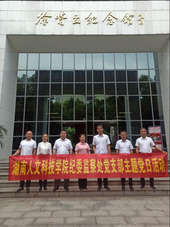6月9日上午,纪委监察处党支部全体党员同志赴徐特立纪念馆开展“传承红色基因,永葆忠诚本色”主题党日活动。党委委员、纪委书记、省监委驻校监察专员凌艳平以普通党员身份参加活动。