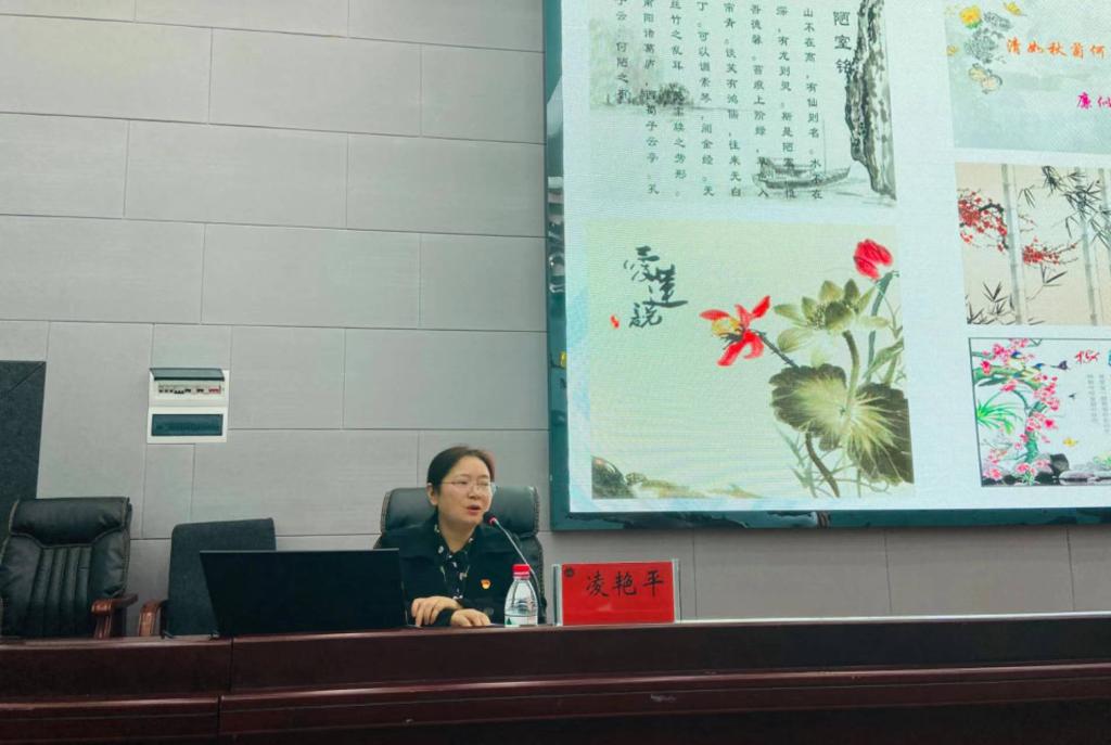 凌艳平以学校清廉文化广场建设初衷与意义进行导入,从清正廉洁作为中华传统文化核心要义的文化渊源,深入解读了新时代廉洁文化建设的内涵和价值意蕴。她列举了腐败青年化、新型化和智能化案例,分享了杨震拒金、陶母退鱼、曾国藩的“八本家训”以及长沙铜官窑等清廉故事,并指出,纵观中华民族五千年的文明发展史,廉洁文化始终贯穿其中,希望大家在廉洁文化的滋养中赓续前行。